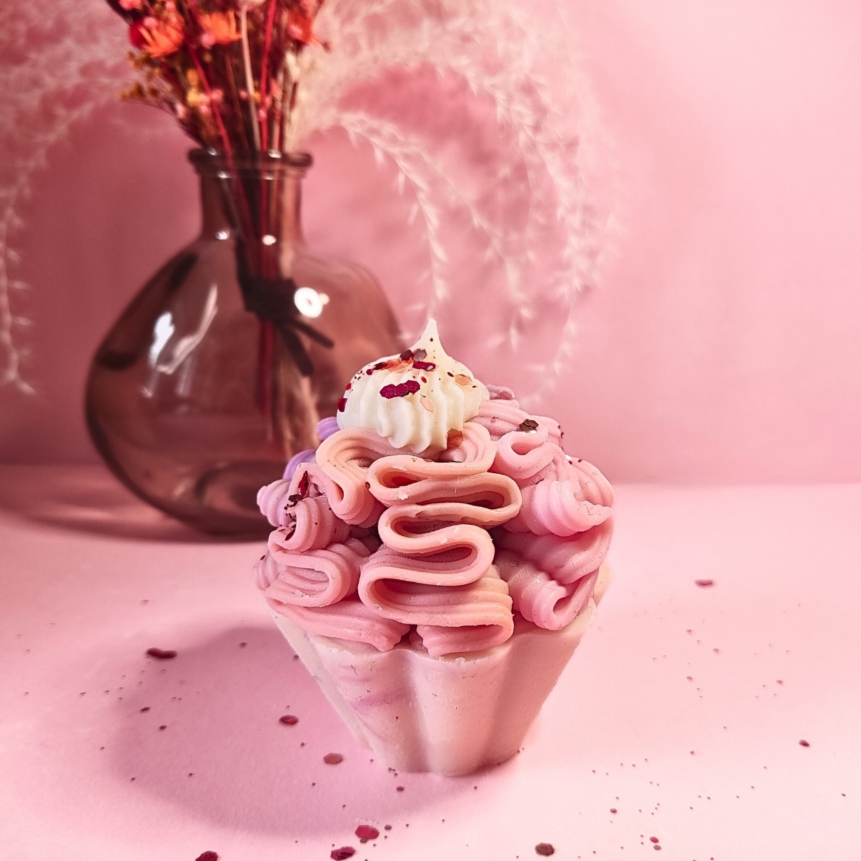 Avec son design irrésistible en forme de cupcake, orné de jolis tourbillons roses et de paillettes biodégradables, ce savon est un vrai plaisir visuel autant qu’un soin de qualité. Surgraissé à 6% et naturellement riche en glycérine végétale, il allie hydratation et plaisir sensoriel pour une peau douce et éclatante. 🌿